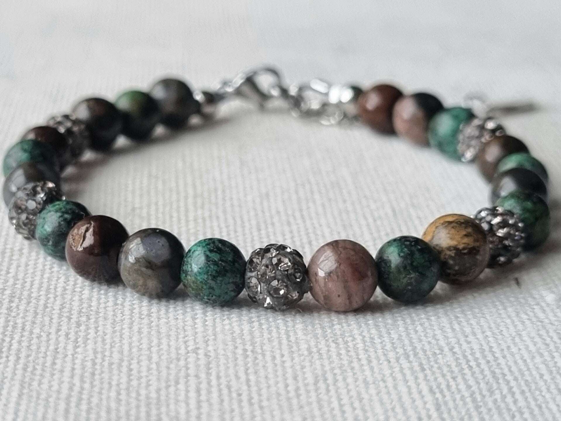 Deze prachtige armband is gemaakt met verschillende edelstenen.