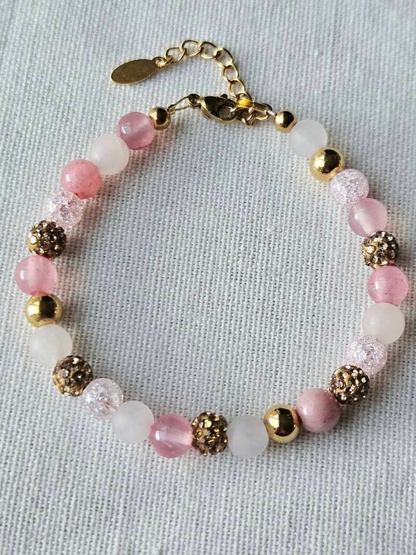 Beads by DEB handgemaakte armband stainless steel met edelstenen-rozenkwarts