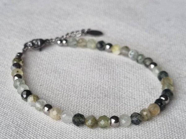 Beads by DEB handgemaakte armband zilver stainless steel,edelstenen facet prehniet