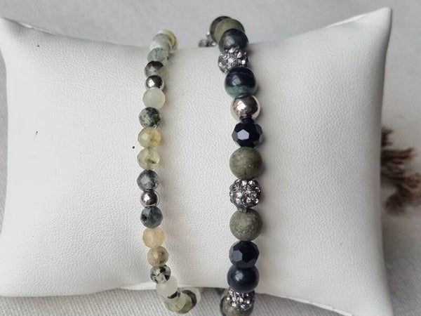 Deze mooie armband is gemaakt met Prehniet facet geslepen edelsteen. Bewerkt met stainless steel kralen.