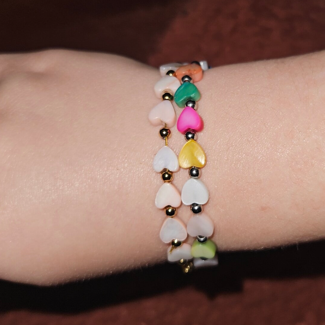 Handgemaakte kinderarmband gemaakt met shellbeads bloemetjes en stainless Steel kralen en onderdelen