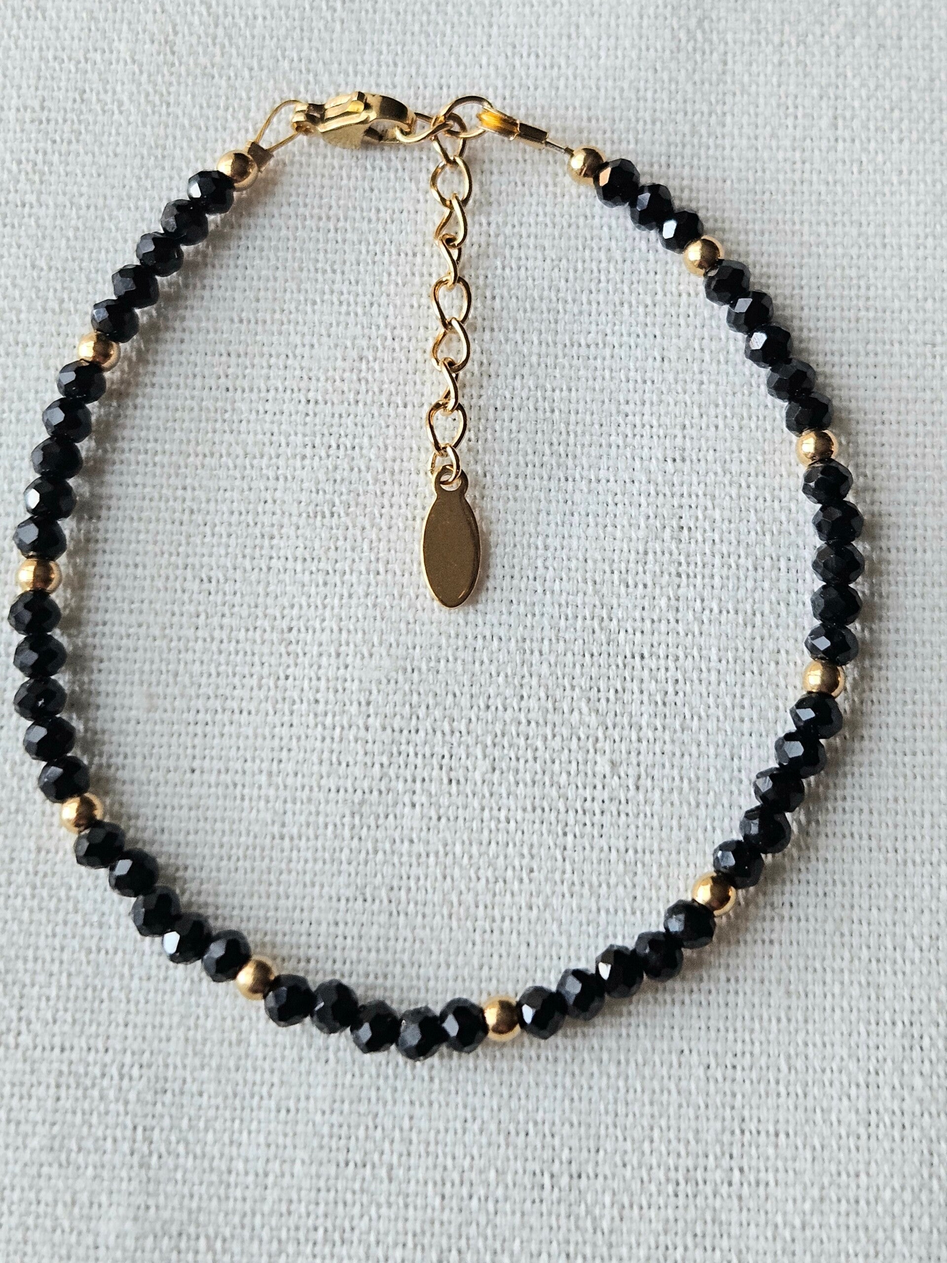 beads by deb handgemaakte armband facet glaskralen met stainless steel goud/zwart
