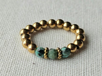Deze gave elastische ringen zijn van gouden stainless steel gemaakt met een prachtige african turquoise edelstenen.
