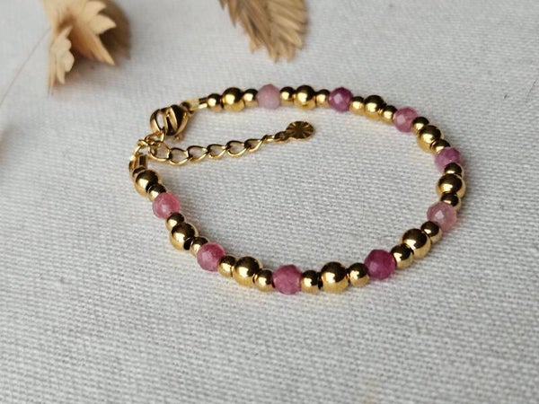 Laat kleine polsjes stralen met deze handgemaakte kinderarmband van Beads by DEB! 🌟 De facetgeslepen tourmaline edelstenen (4 mm) in combinatie met verguld gouden stainless steel kralen en slotje zorgen voor een sprankelende en kleurrijke uitstraling. Het verstelbare ontwerp (12 cm + 3 cm verlengketting) maakt het geschikt voor verschillende polsmaten, zodat het armbandje perfect past om de pols van een kind en meegroeit met hun avonturen. 🎀