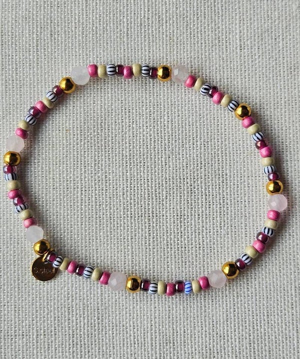 enkelbandje gemaakt met Miyuki rocailles kralen, stainless steel kralen en facet kralen.