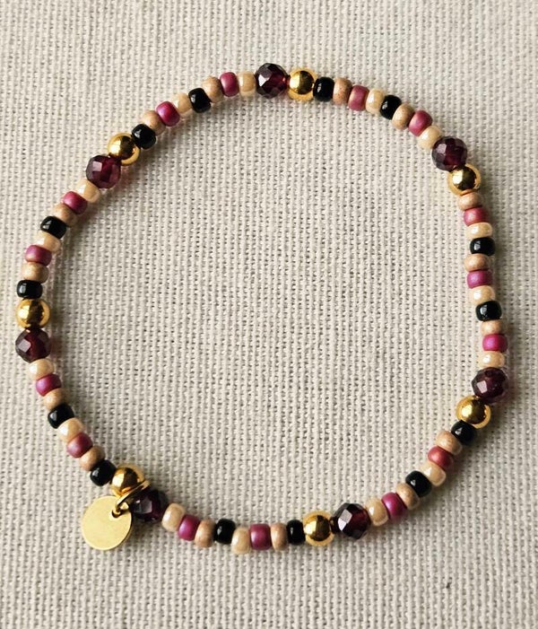 Beads by DEB handgemaakte elastische armband 16cm bordeaux stainless steel -miyuki