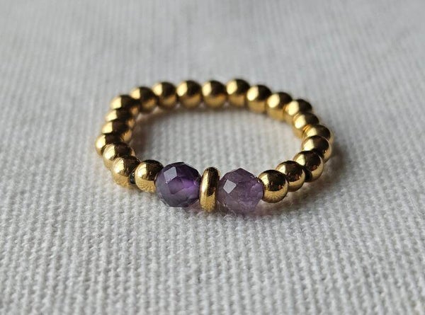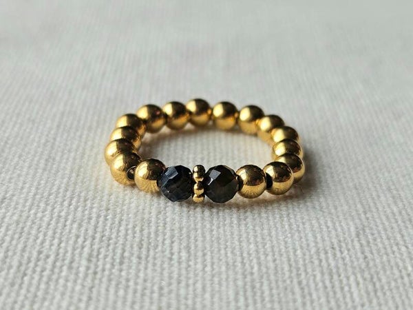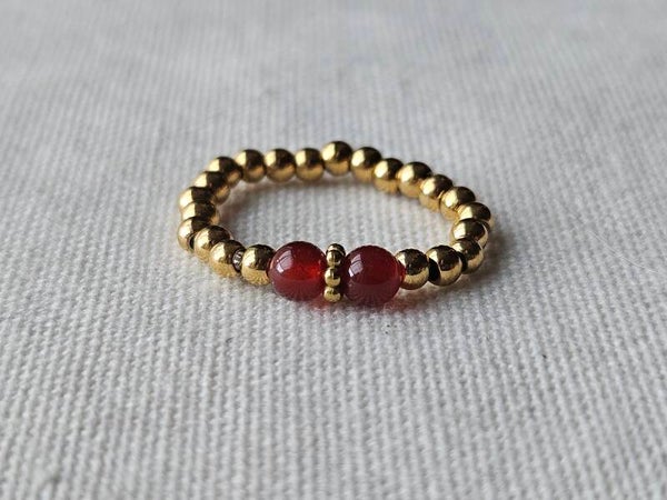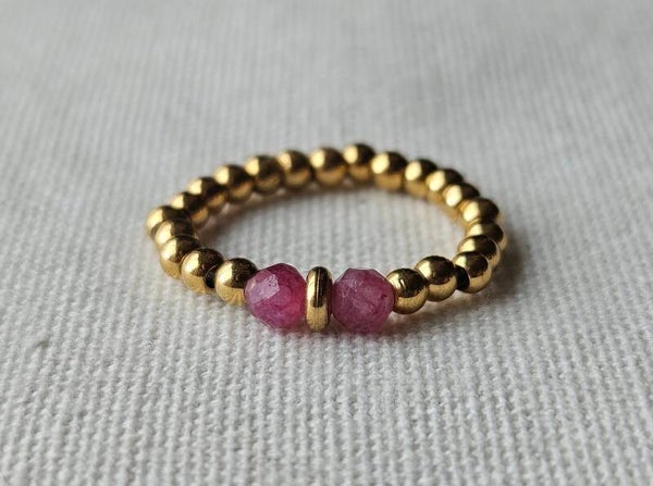 Voeg een vleugje kleur en energie toe aan je look met deze handgemaakte elastische ring van Beads by DEB. Gemaakt van verguld gouden stainless steel en versierd met een prachtige 4 mm edelsteen naar keuze. Dankzij het elastiek past de ring comfortabel en flexibel, geschikt voor ringmaat 15–18. De ring verkleurt niet, zelfs niet in water, zodat je zorgeloos kunt genieten van je nieuwe accessoire.