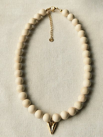 Handgemaakt door Beads by DEB: een stijlvolle ketting met grote ivoorkleurige edelstenen kralen van 10 mm. Een tijdloze look en perfect passend bij de trends van dit najaar. De ketting is 40 cm lang en heeft een verlenging van 5 cm. Afgewerkt met stainless steel onderdelen en een hartbedel naar keuze. Stainless steel verkleurt niet en is huidvriendelijk.