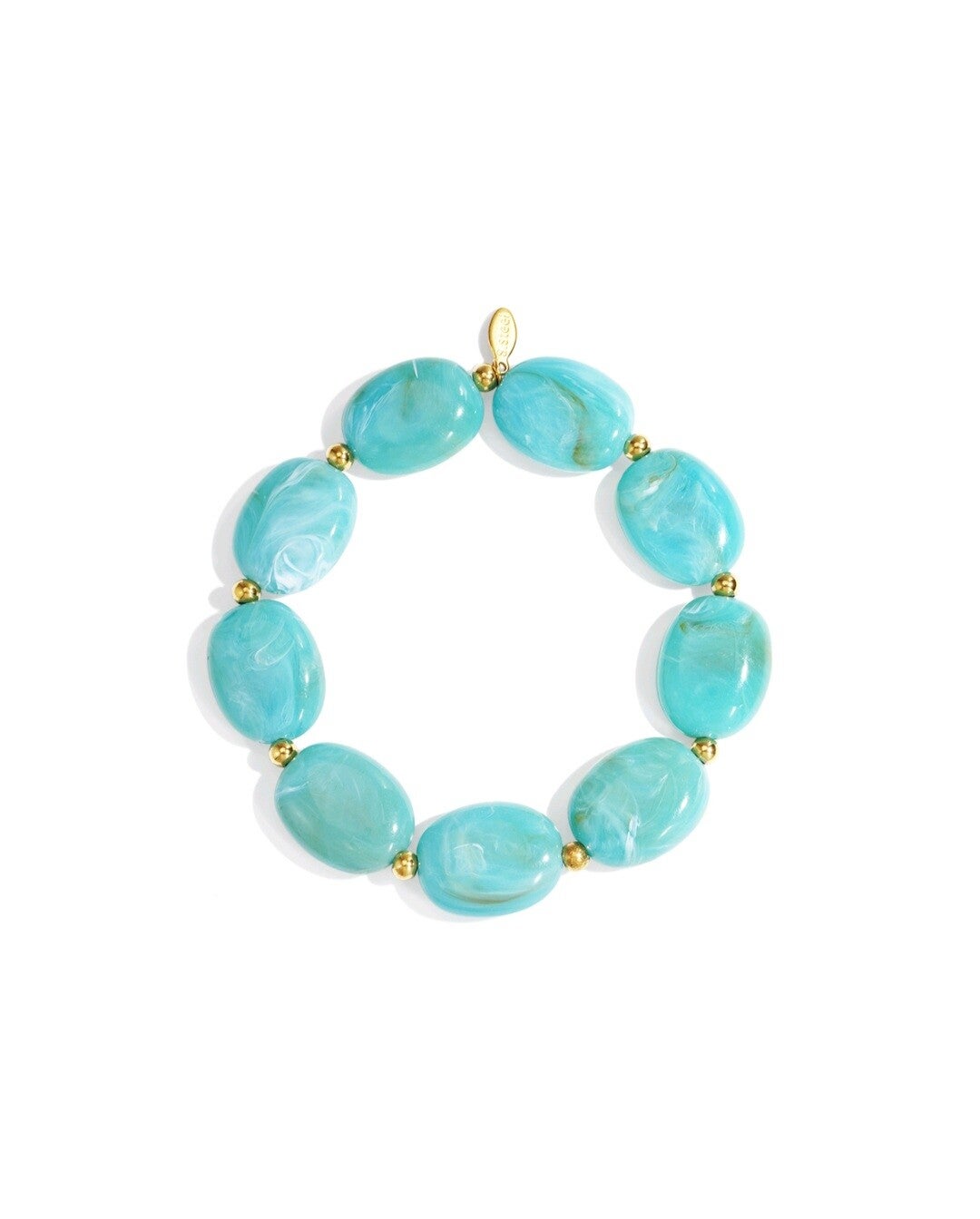 Elastische armband met grote resin kralen Tussenkralen zijn van verguld gouden stainless steel verkleurd niet en allergieën vrij